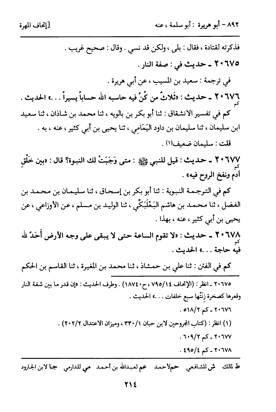 20678 - حديث (كم) : "لا تقوم الساعة حتى لا يبقى على وجه الأرض أحَد لله فيه حاجة ... " الحديث.