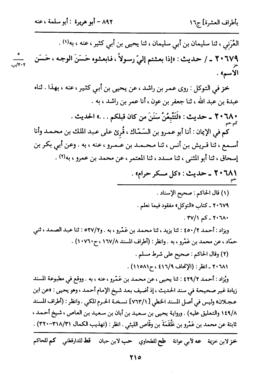 20680 - حديث (كم حم) : "لَتَتبعُن سَنَنَ من كان قبلكم ... " الحديث.