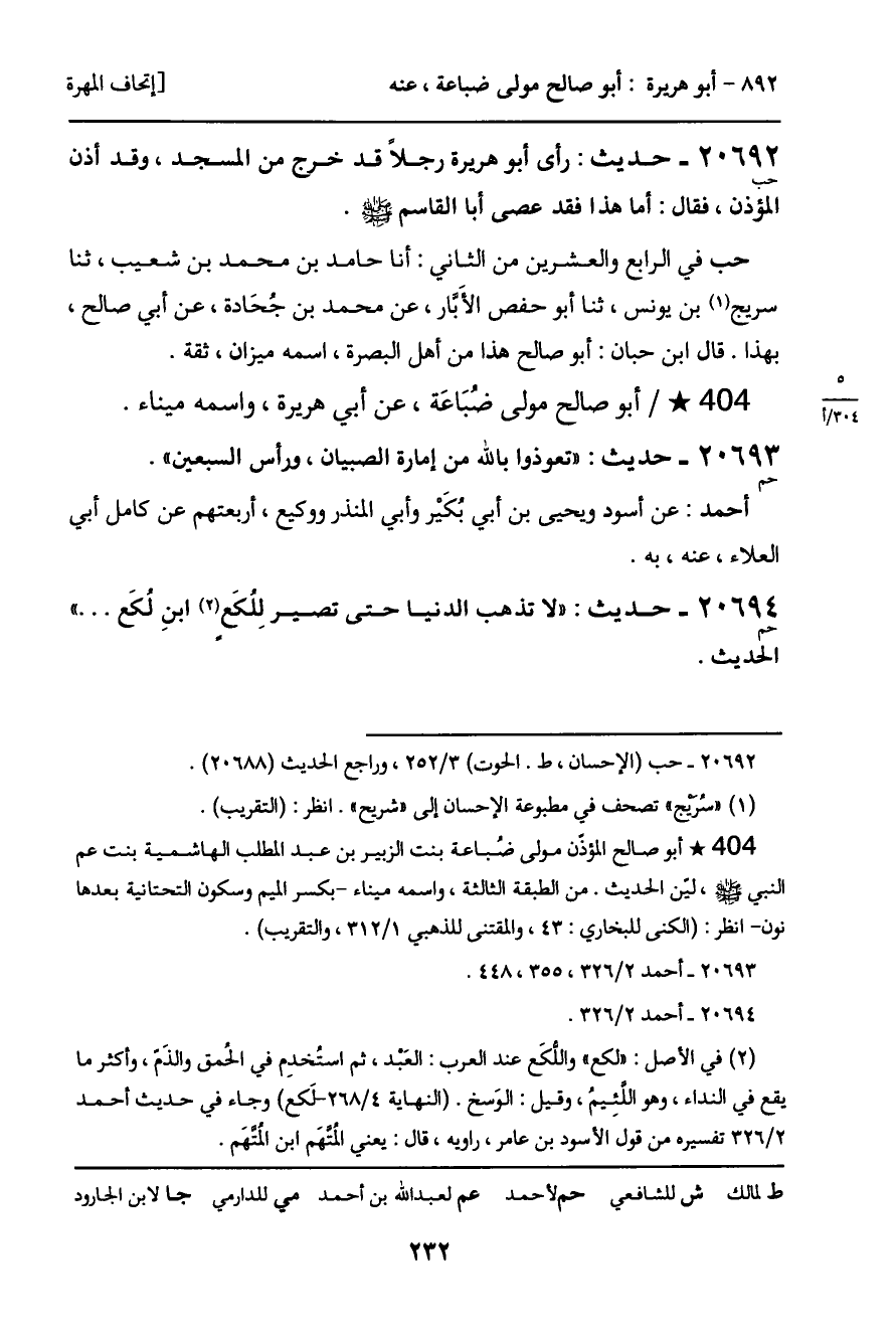 20694 - حديث (حم) : "لا تذهب الدنيا حتى تصير لِلكلع ابنِ لُكعَ ... " الحديث.