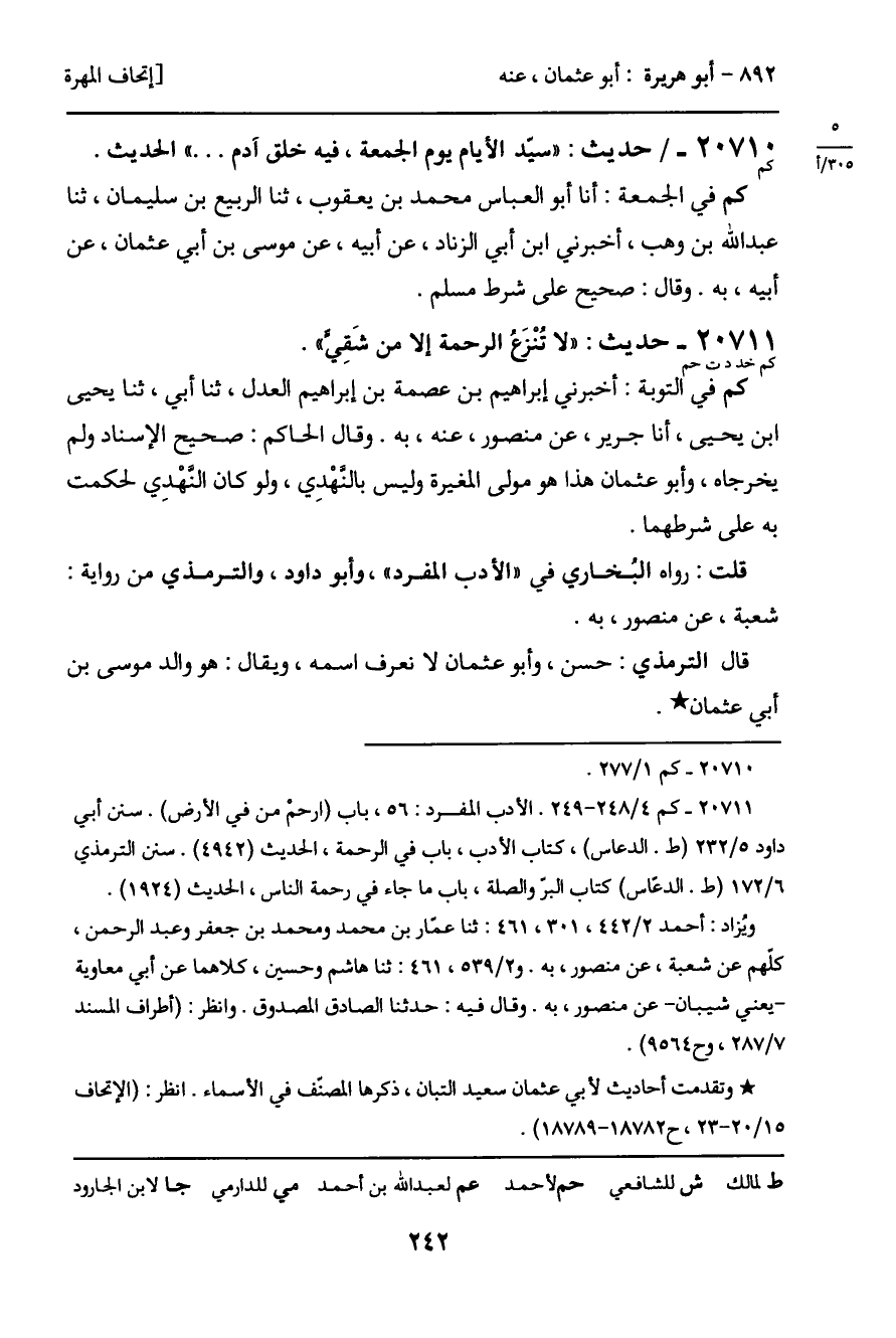 20711 - حديث (كم خد د ت حم) : "لا تُنْزعُ الرحمة إلا من شَقي".