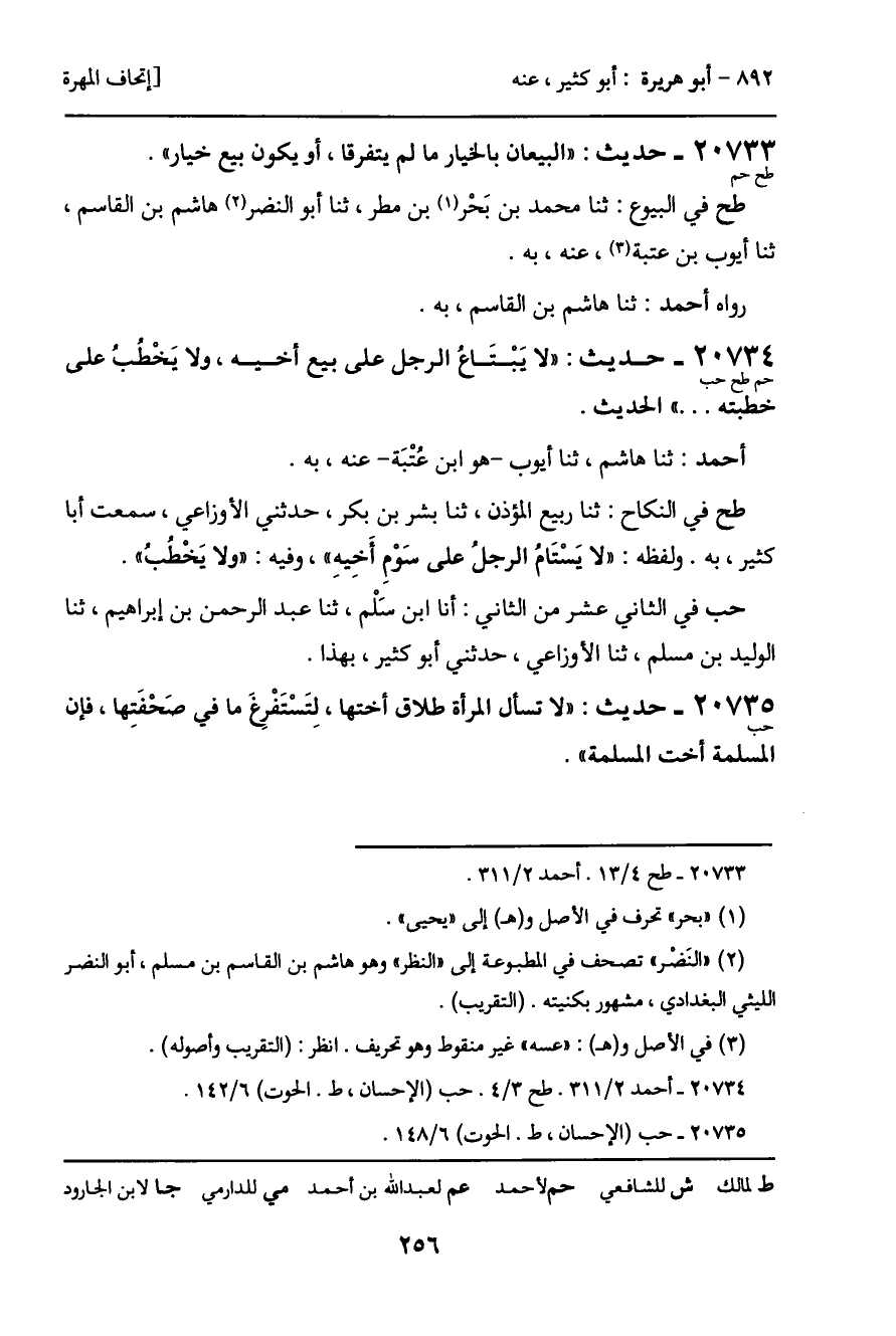 20734 - حديث (حم طح حب) : "لا يَبْتَاع الرجل على بيع أخيه، ولا يَخْطب على خطبته ... " الحديث.
