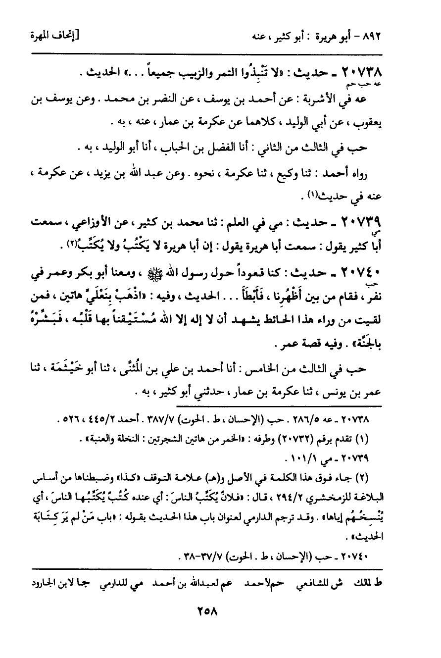 20738 - حديث (عه حب حم) : "لا تَنْبذوا التمر والزبيب جميعاً ... " الحديث.