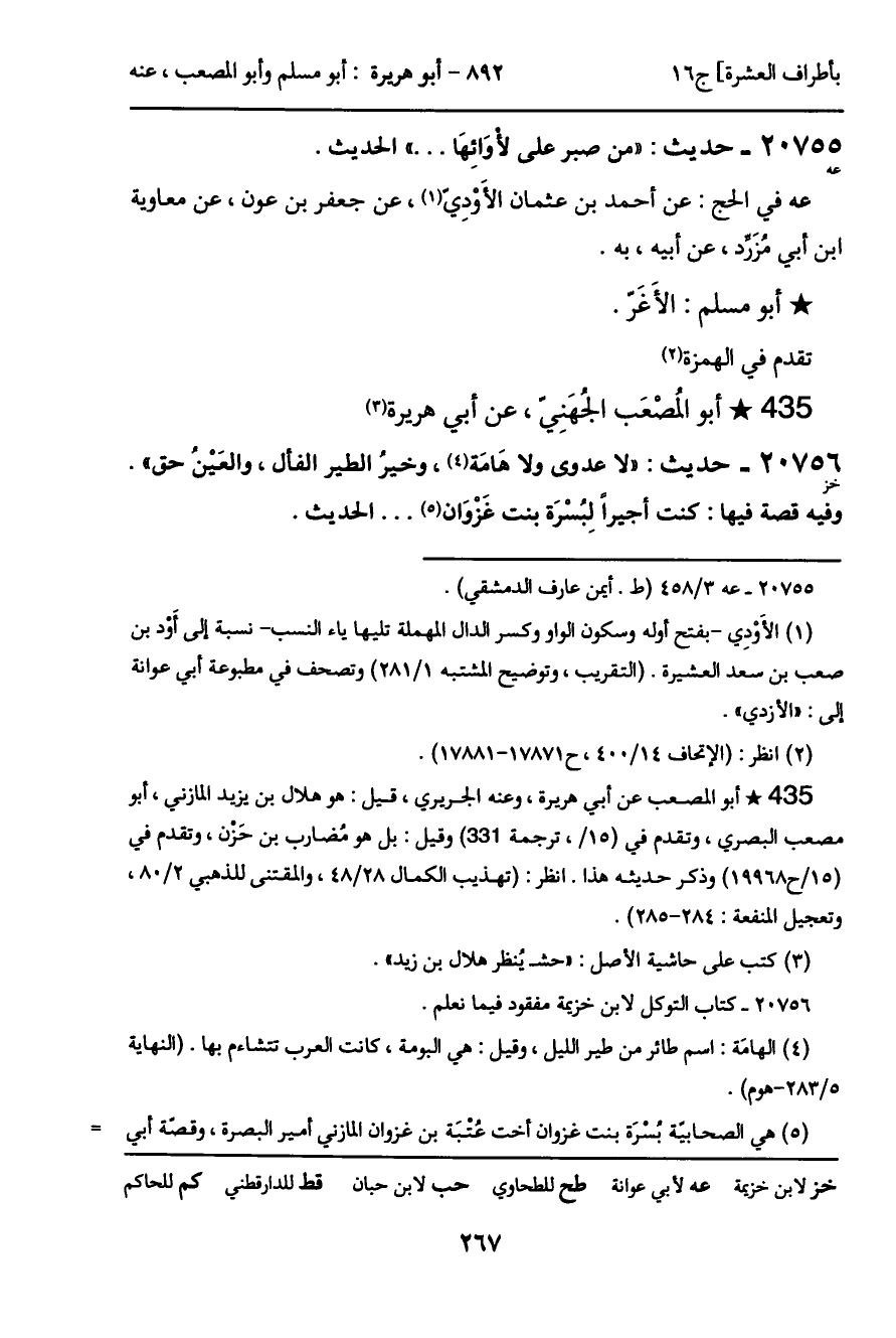 20756 - حديث (خز) : "لا عدوى ولا هَامة، وخيرُ الطير الفأل، والعَينُ حق".