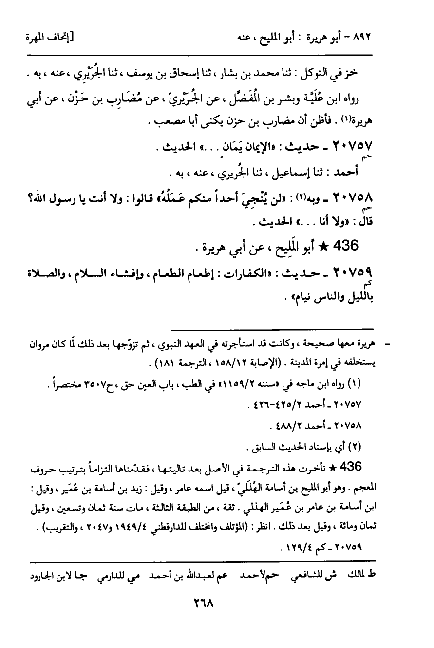 20758 - وبه (حم) : "لن يُنْجِيَ أحداً منكم عَمَلُهُ" قالوا: ولا أنت يا رسول الله؟ قال: "ولا أنا ... " الحديث.