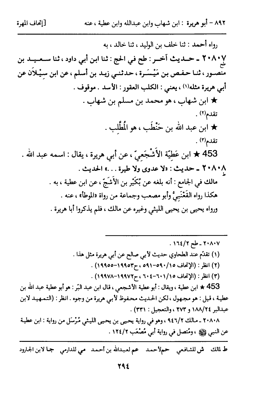 20808 - حديث (ط) : "لا عدوى ولا طيرة ... " الحديث.