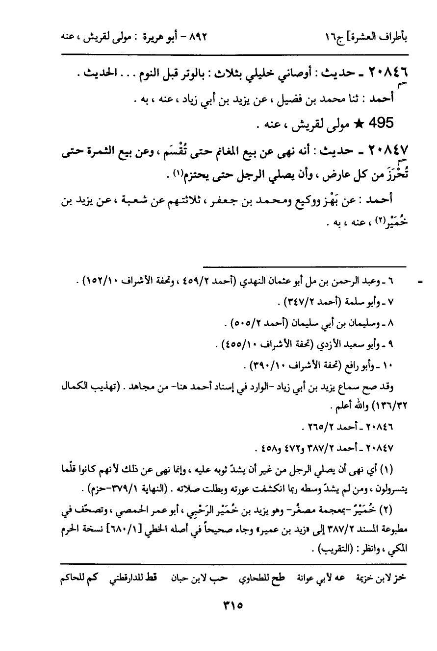 20846 - حديث (حم) : أوصاني خليلي بثلاث: بالوتر قبل النوم ... الحديث.
