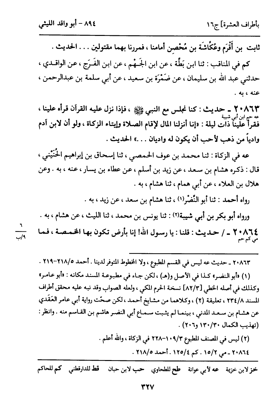 عه في الزكاة: ثنا محمد بن عوف الحمصي، ثنا إسحاق بن إبراهيم الحُنَيْني، قال: ذكره هشام بن سعد، عن زيد بن أسلم، عن عطاء بن يسار، عنه، به. وعن هلال بن العلاء، عن أبي همام، ثنا هشام، به.