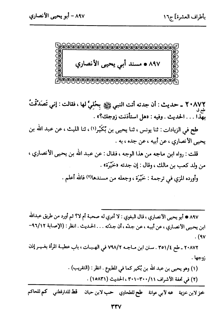 20872 - حديث (طح ق) : أن جدته أتت النبي - صَلَّى اللَّهُ عَلَيْهِ وَسَلَّمَ - بحُلِي لها، فقالت: إني تَصَدَّقْتُ بهذا ... الحديث. وفيه: "هل استأذنت زوجك؟ ".