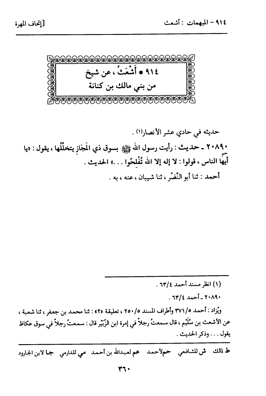 914 ـ أشعث، عن شيخ من بنى مالك بن كنانة