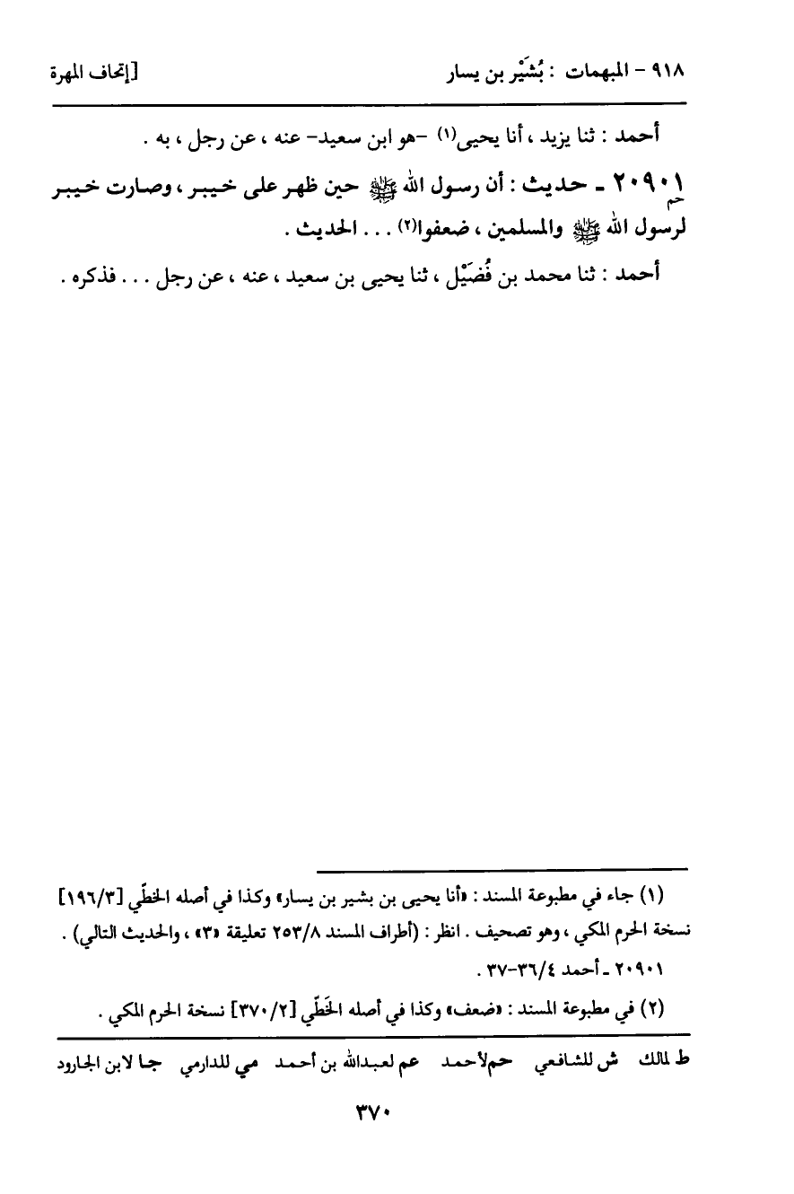 20901 - حديث (حم) : أن رسول الله - صَلَّى اللَّهُ عَلَيْهِ وَسَلَّمَ - حين ظهر على خيبر، وصارت خيبر لرسول الله - صَلَّى اللَّهُ عَلَيْهِ وَسَلَّمَ - والمسلمين، ضعفوا ... الحديث.
