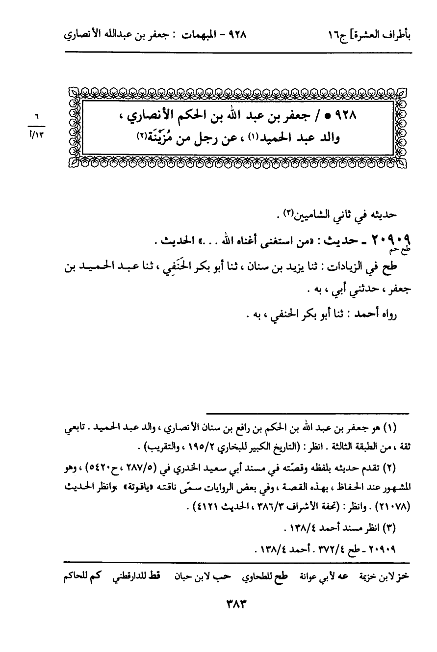 طح في الزيادات: ثنا يزيد بن سنان، ثنا أبو بكر الحَنَفِي، ثنا عبد الحميد بن جعفر، حدثني أبي، به.