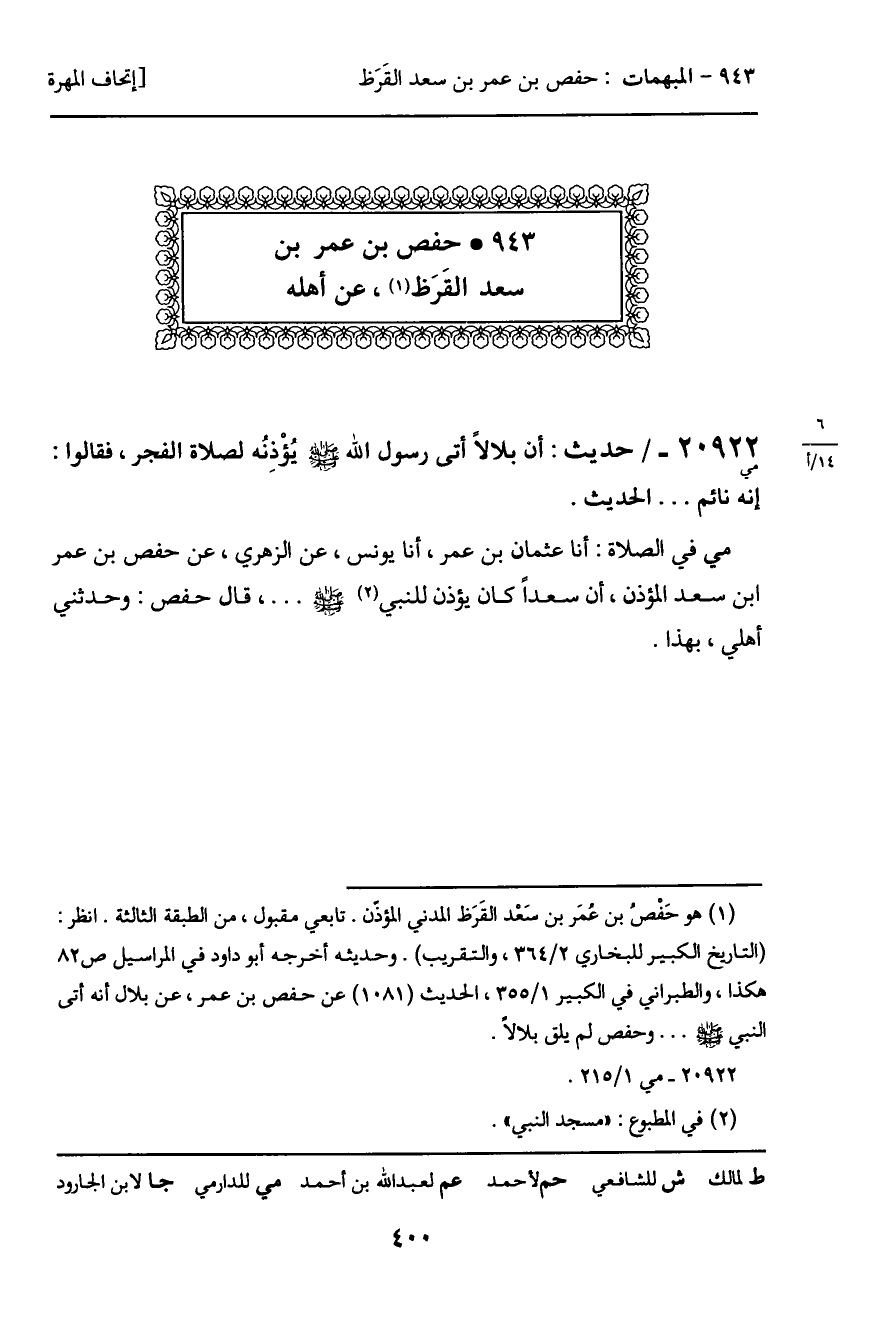 943 ـ حفص بن عمر بن سعد القَرَظ، عن أهله