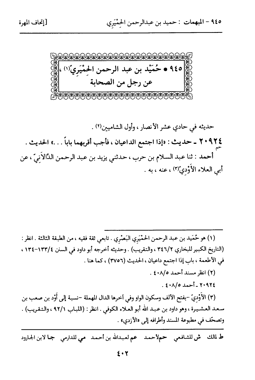 20924 - حديث (حم) : "إذا اجتمع الداعيان، فأجب أقربهما باباً ... " الحديث.
