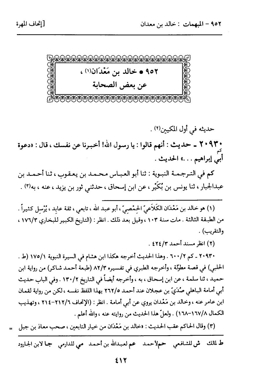 952 ـ خالد بن معدان، عن بعض الصحابة