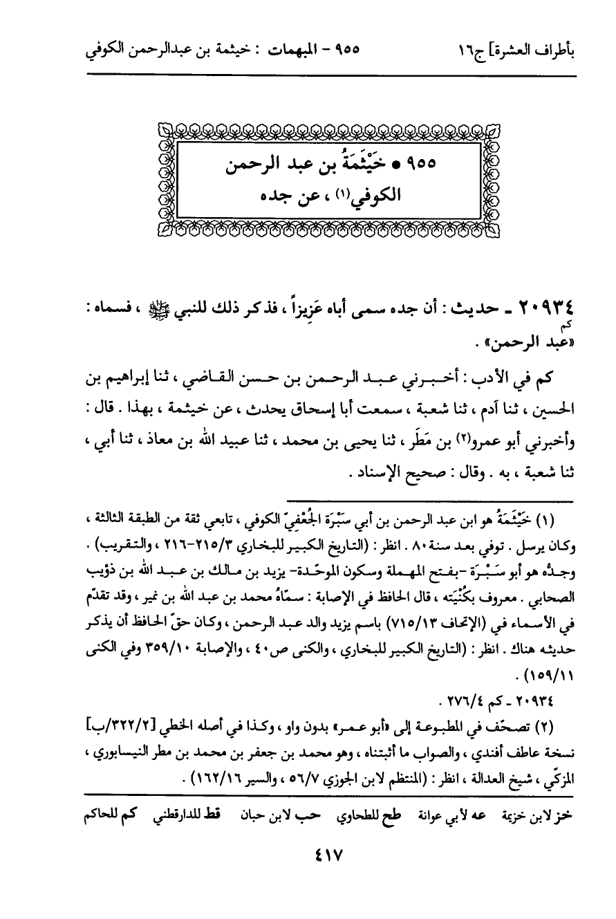 955 ـ خيثمة بن عبد الرحمن الكوفي، عن جده