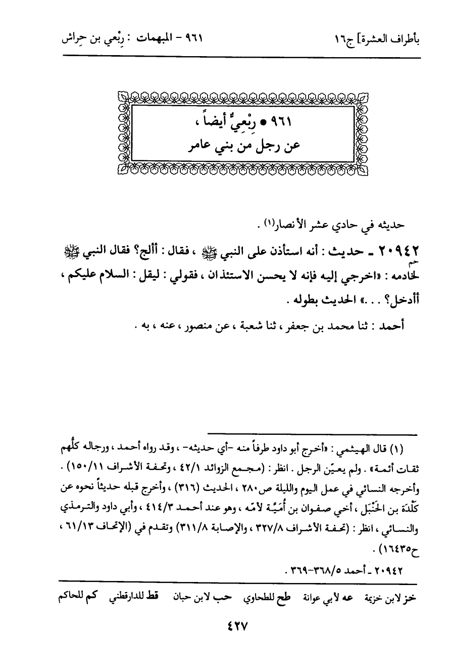 961 ـ رِبْعي أيضاً، عن رجل من بني عامر