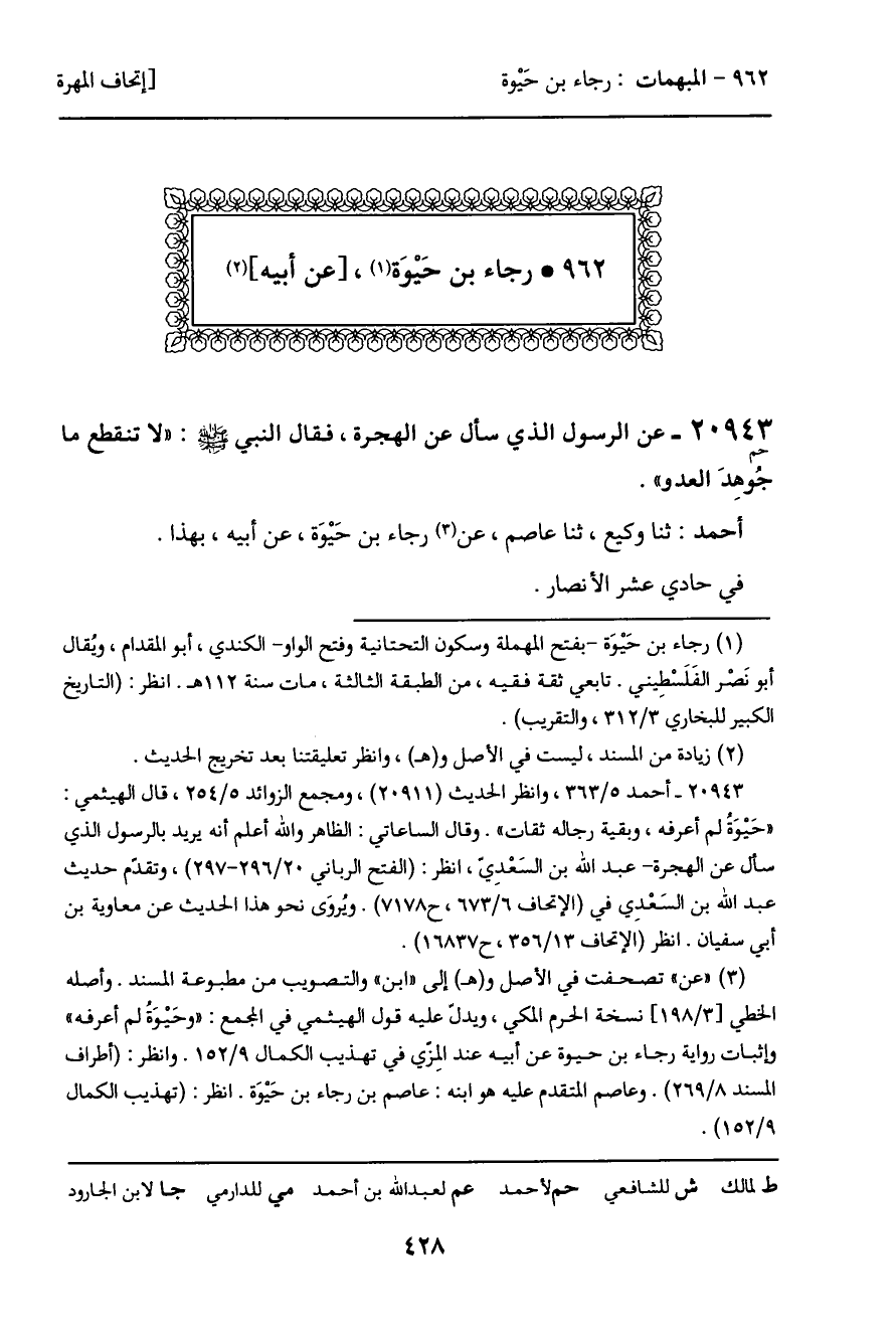 20943 - عن الرسول الذي سأل عن الهجرة، فقال النبي - صَلَّى اللَّهُ عَلَيْهِ وَسَلَّمَ - (حم) : "لا تنقطع ما جوهِدَ العدو".