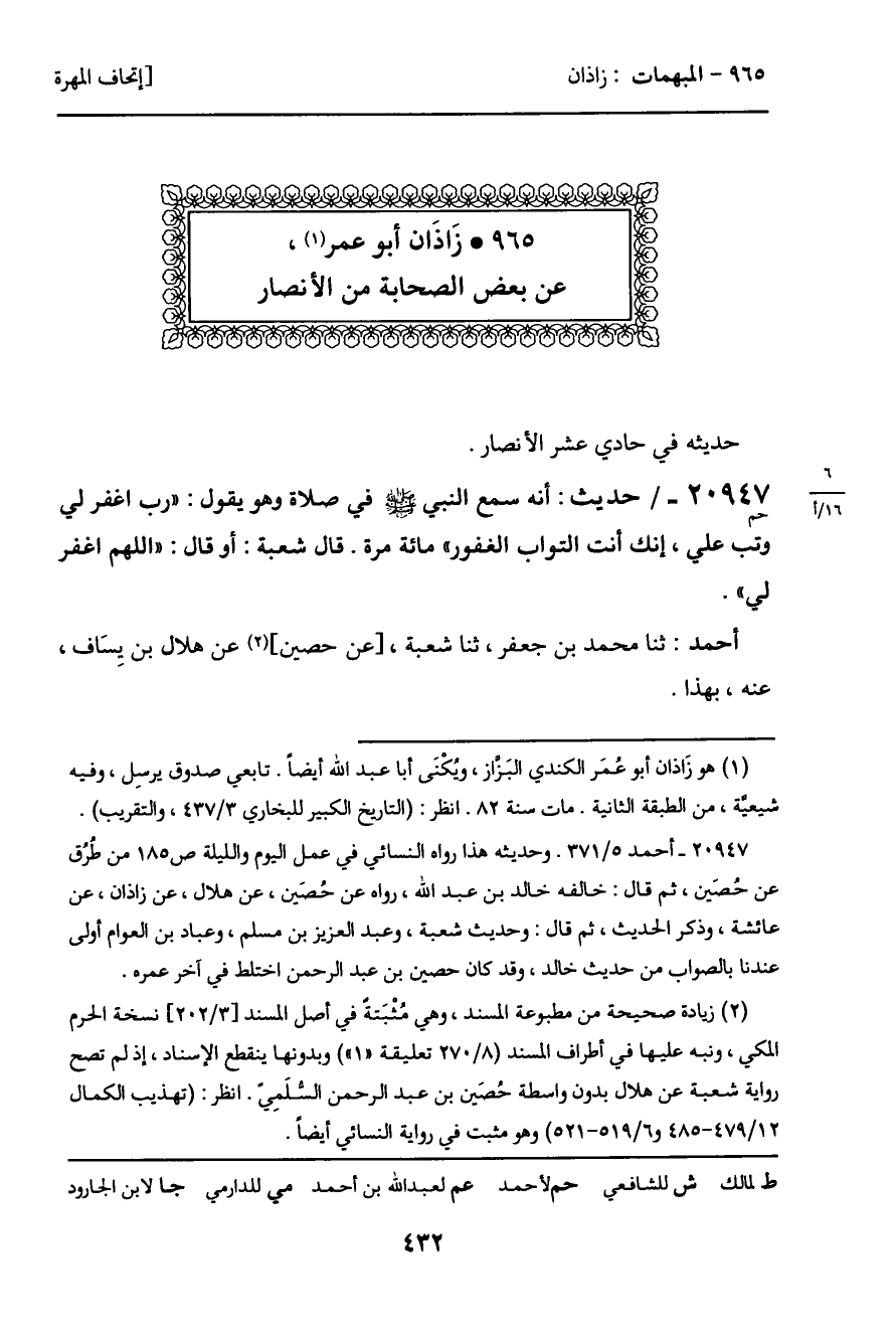 965 ـ زاذان أبو عمر، عن بعض الصحابة من الأنصار