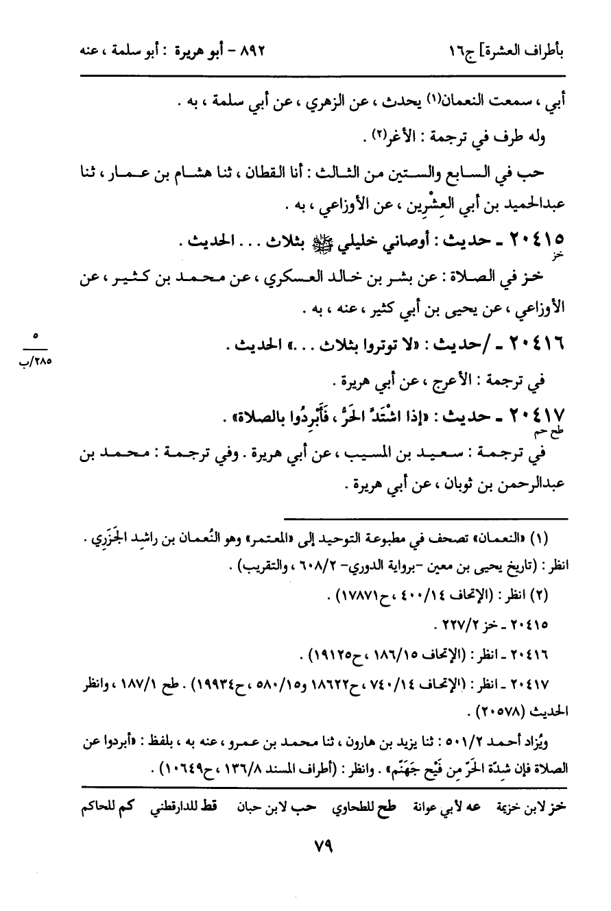 20415 - حديث (خز) : أوصاني خليلي - صَلَّى اللَّهُ عَلَيْهِ وَسَلَّمَ - بثلاث ... الحديث.