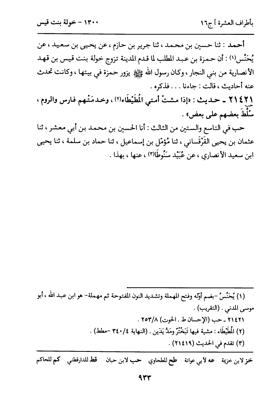 21421 - حديث (حم) : "إذا مشتْ أمتي المطَيْطَاء، وخدمَتْهم فارس والروم، سُلطَ بعضهم على بعض".