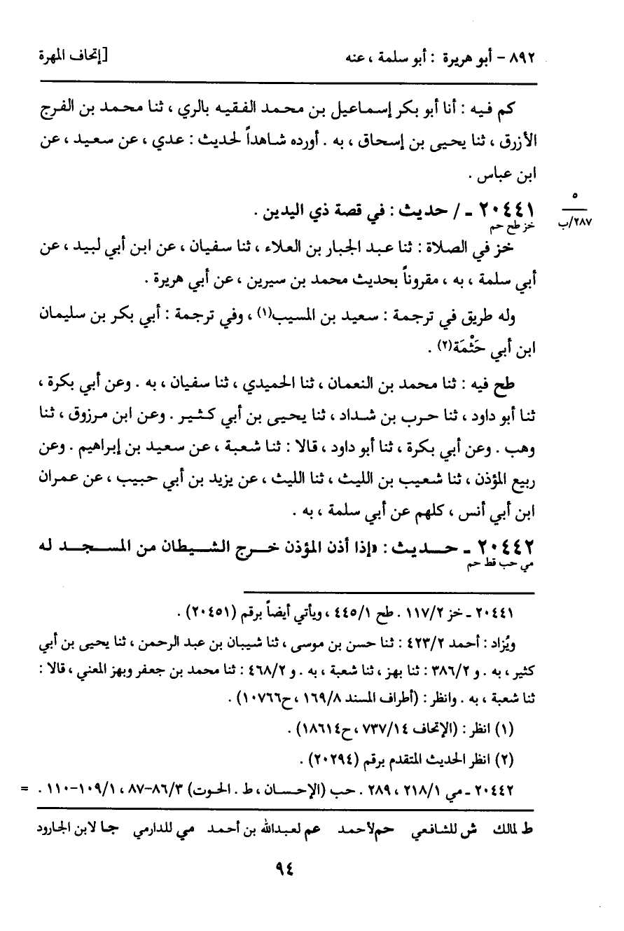 20441 - حديث (خز طح حم) : في قصة ذى اليدين.