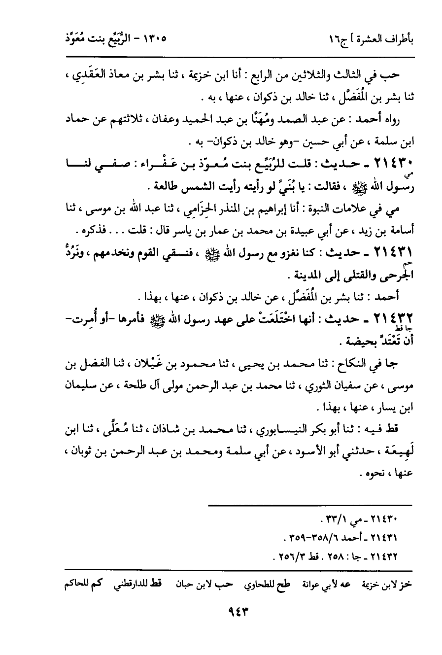 21430 - حديث (مي) : قلت للرُبيع بنت مُعوّذ بن عَفْراء: صفي لنا رسول الله - صَلَّى اللَّهُ عَلَيْهِ وَسَلَّمَ -، فقالت: يا بُنَي لو رأيته رأيت الشمس طالعة.