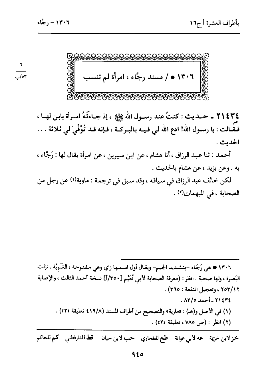 1306 ـ مسند رجاء، امرأة لم تنسب