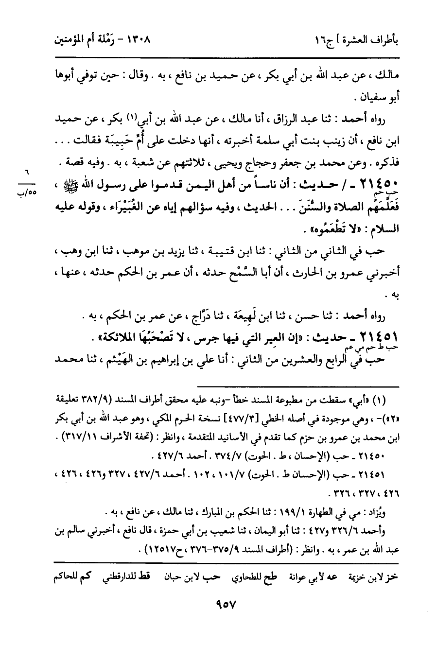 -[959]- مولى أم حبيبة (أنه سمعه يخبر) عبد الله بن عمر، عنها، به. وعن يحيى بن سعيد، عن عبيد الله، عن نافع، به. قال عبد الله: ثنا أبو بكر بن خَلاد، سمعت يحيى بن سعيد، قال: حدث سفيان، عن عبيد الله بن عمر، عن نافع، عن ابن عمر، بهذا. قال يحيى: فقلت له: تعست يا أبا عبد الله! قال لي: كيف هو؟ [قلت] : حدثني عبيد الله، عن نافع، عن سالم، عن أبي الجَراح، عن أم حبيبة، به، فقال: صدقت. وعن عَبِيدَة بن حُمَيْد، عن عبيد الله، به.