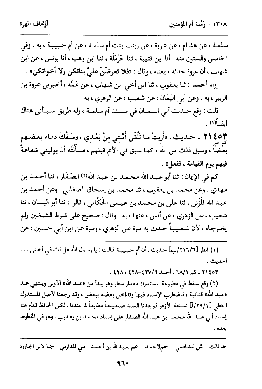 رواه أحمد: ثنا أبو اليمان، أنا شعيب بن أبي حمزة، فذكر هذا الحديث تلو أحاديث ابن أبي حسين، أنا أنس بن مالك، عن أم حبيبة، بهذا.