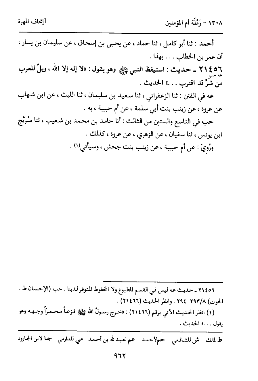 21456 - حديث (عه حب) : استيقظ النبي - صَلَّى اللَّهُ عَلَيْهِ وَسَلَّمَ - وهو يقول: "لا إله إلا الله، ويل للعرب من شَر قد اقترب ... " الحديث.