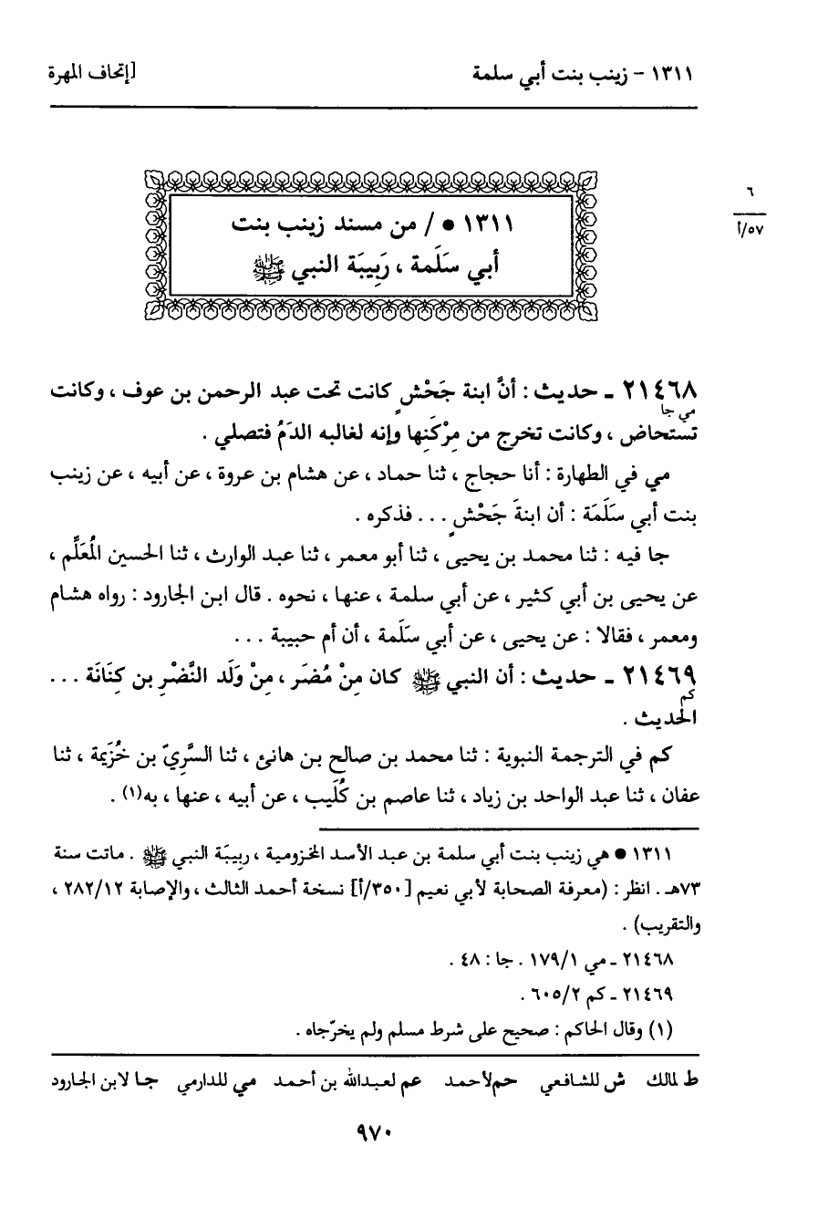 1311 ـ من مسند زينب بنت أبي سلَمة، رَبِيبَة النبي - صَلَّى اللَّهُ عَلَيْهِ وَسَلَّمَ -