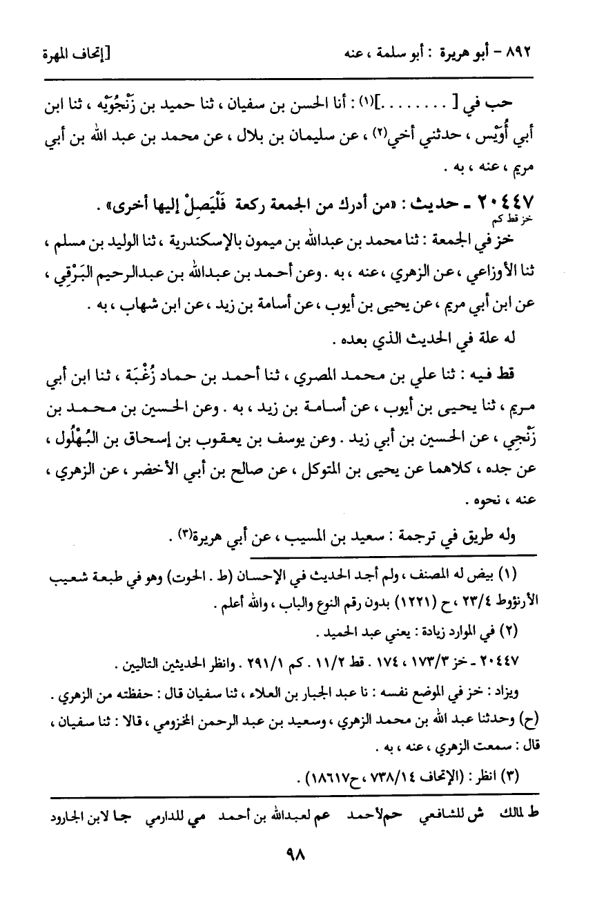 20447 - حديث (خز قط كم) : "من أدرك من الجمعة ركعة فَلْيَصلْ إليها أخرى".