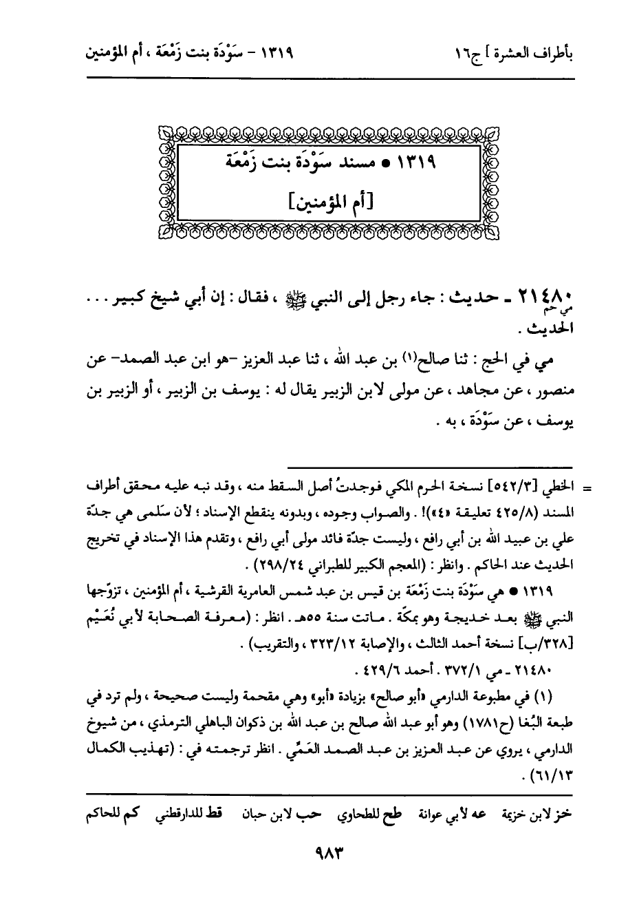 1319 ـ مسند سَوْدَة بنت زَمْعَة [أم المؤمنين]