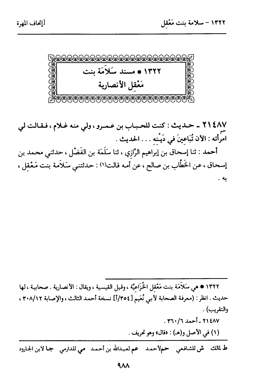 1322 ـ مسند سلامة بنت مَعْقِل الأنصارية