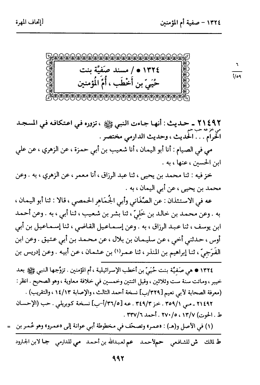 1324 ـ مسند صفية بنت حييّ بن أخطب، أم المؤمنين
