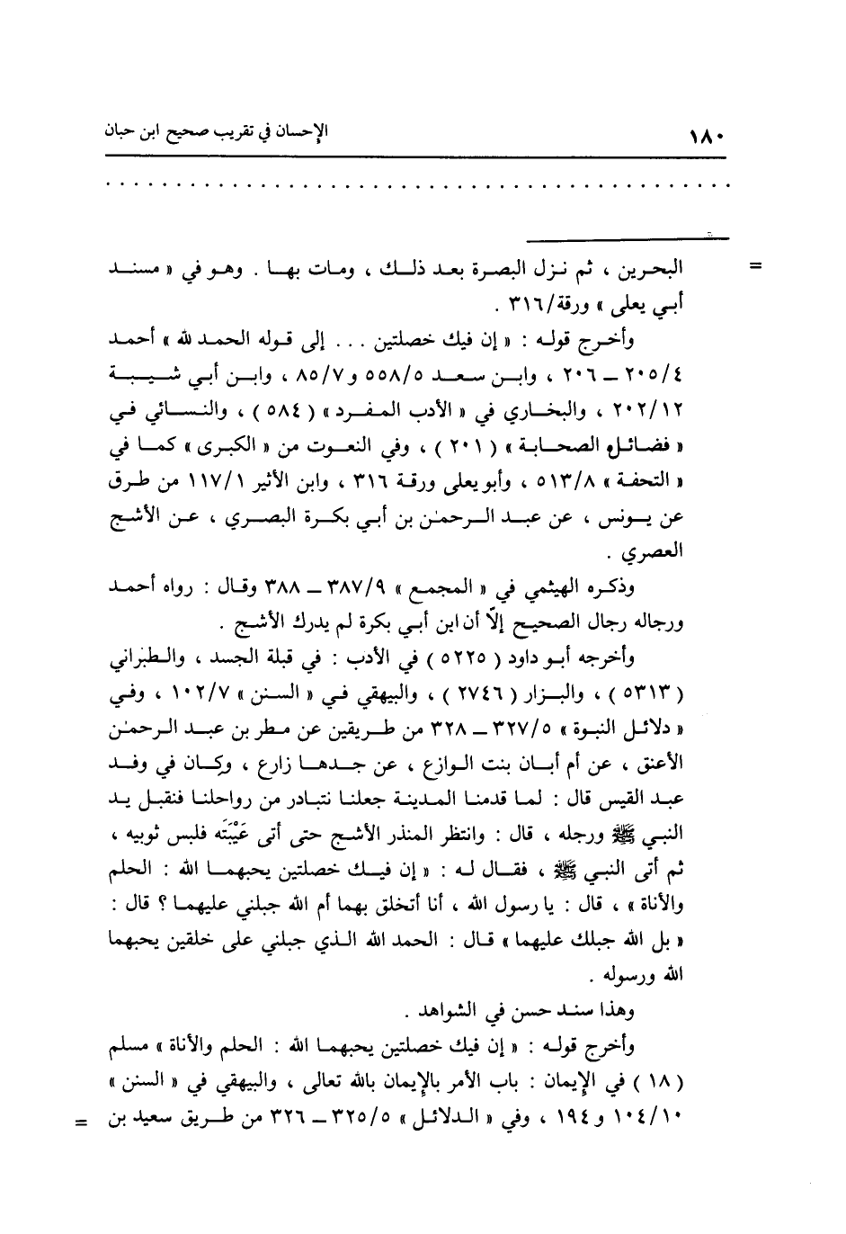 وأخرج قوله: "إن فيك خصلتين يحبهما الله: الحلم والأناة" مسلم "18" في الإيمان: باب الأمر بالإيمان بالله تعالى، والبيهقي في "السنن" 10/104 و 194، وفي "الدلائل" 5/325-326 من طريق سعيد بن.....=