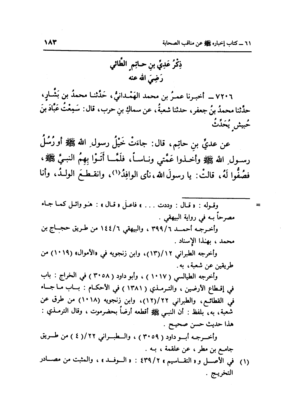 ذِكْرُ عَدِيِّ بْنِ حَاتِمٍ الطَّائِيِّ رَضِيَ اللَّهُ تعالى عَنْهُ