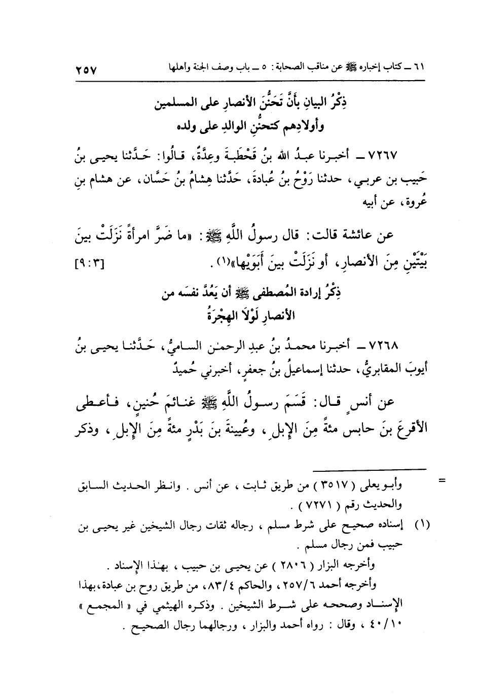 ذِكْرُ الْبَيَانِ بِأَنَّ تَحَنُّنَ الْأَنْصَارِ عَلَى الْمُسْلِمِينَ وَأَوْلَادِهُمْ كَتَحَنُّنِ الْوَالِدِ عَلَى وَلَدِهِ