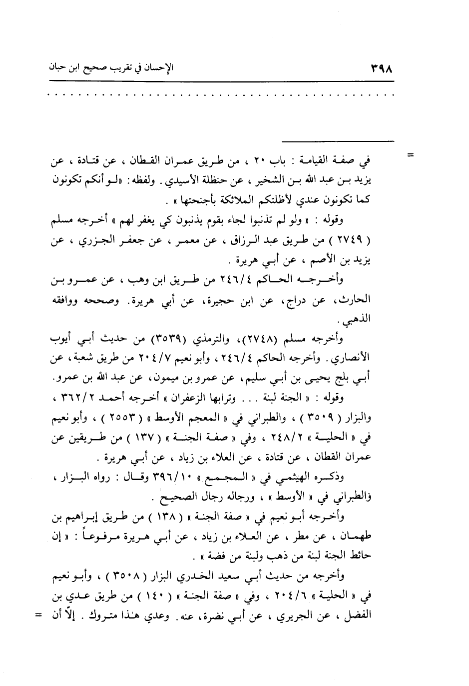 وقوله: "الجنة لبنة...... وترابها الزعفران" أخرجه أحمد 2/362، والبزار"3509"، والطبراني في "المعجم الأوسط" "2553"، وأبو نعيم في "الحلية" 2/248، وفي "صفة الجنة" "137" من طريقين عن عمران القطان، عن قتادة، عن العلاء بن زياد، عن أبي هريرة.