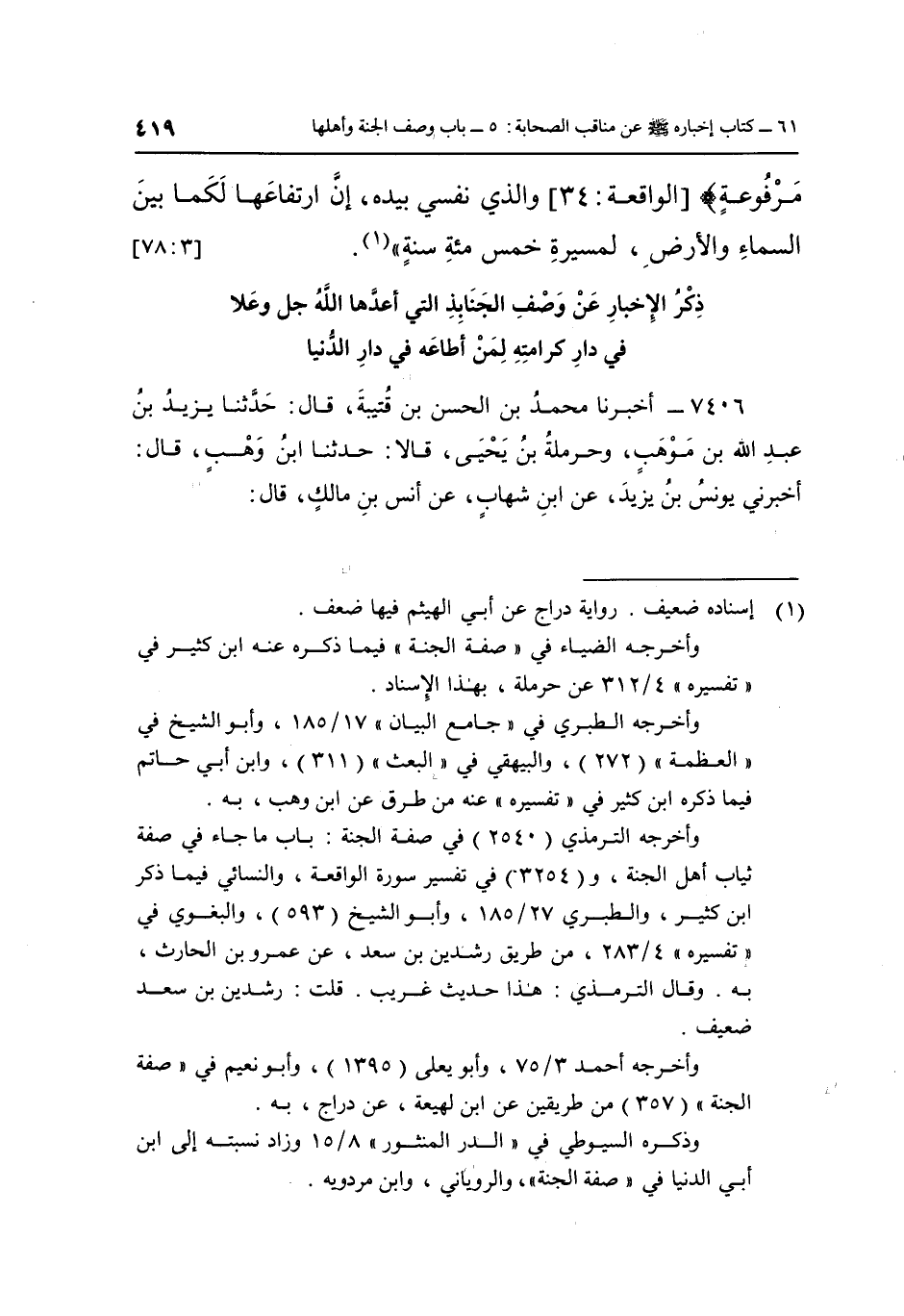 وأخرجه الضياء في "صفة الجنة" فيما ذكره عنه ابن كثير في "تفسيره" 4/312 عن حرملة، بهذا الإسناد.