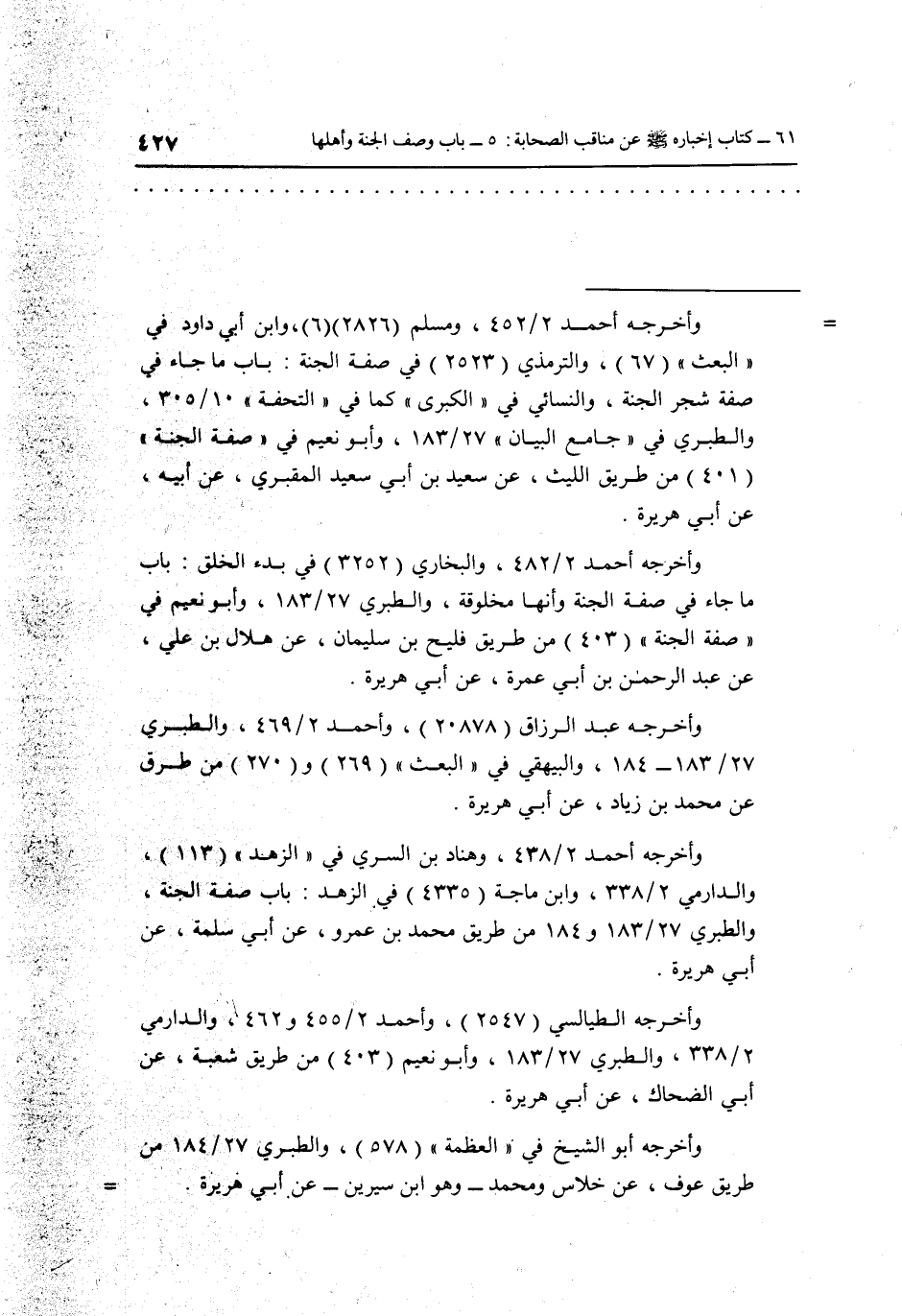 وأخرجه أحمد 2/438، وهناد بن السري في "الزهد" "113"، والدارمي 2/338، وابن ماجة "4335" في الزهد: باب صفة الجنة، والطبري 27/183و 184 من طريق محمد بن عمرو، عن أبي سلمة، عن أبي هريرة.