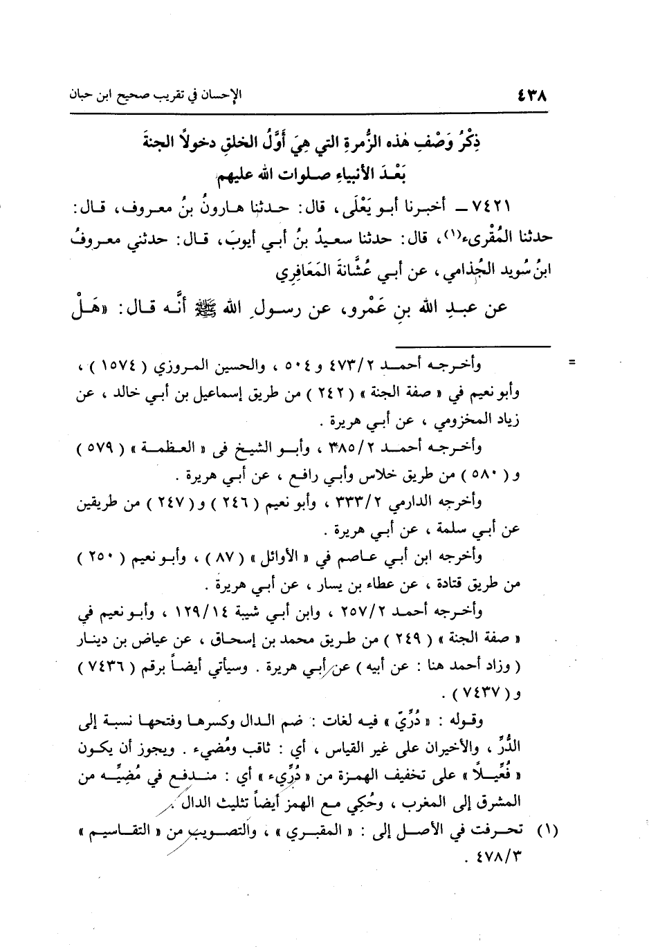 = وأخرجه أحمد 2/473و504، والحسين المروزي "1574"، وأبو نعيم في "صفة الجنة" "242" من طريق إسماعيل بن أبي خالد، عن زياد المخزومي، عن أبي هريرة.