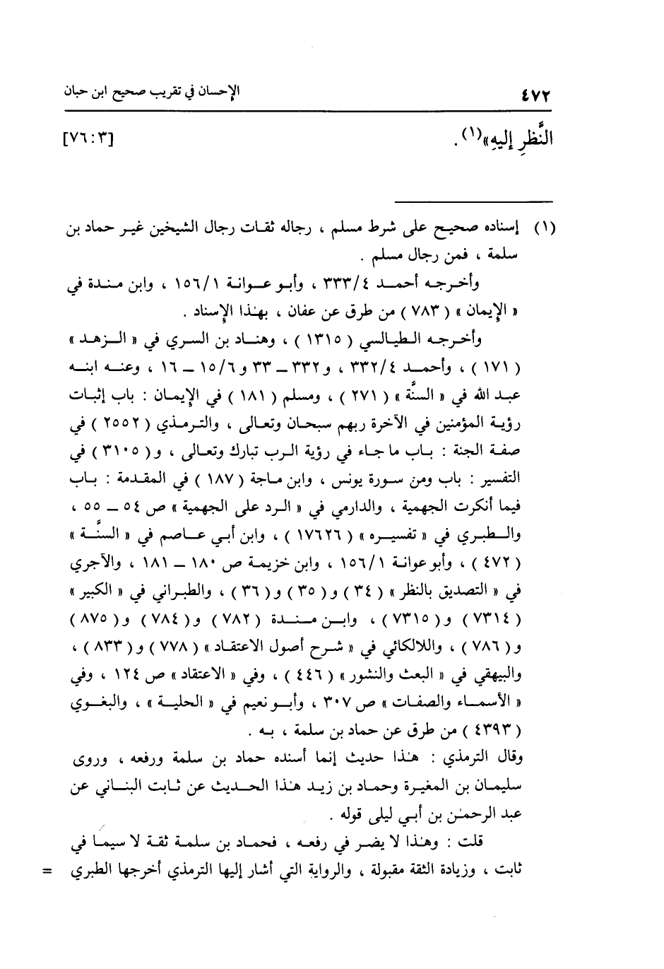 قلت: وهذا لايضر في رفعه، فحماد بن سلمة ثقة لا سيما في ثابت، وزيادة الثقة مقبولة، والرواية التي أشار إليها الترمذي أخرجها الطبري. . . . . . . . . . . . . . . . . . . . . . . . . . . . . . . . . .=