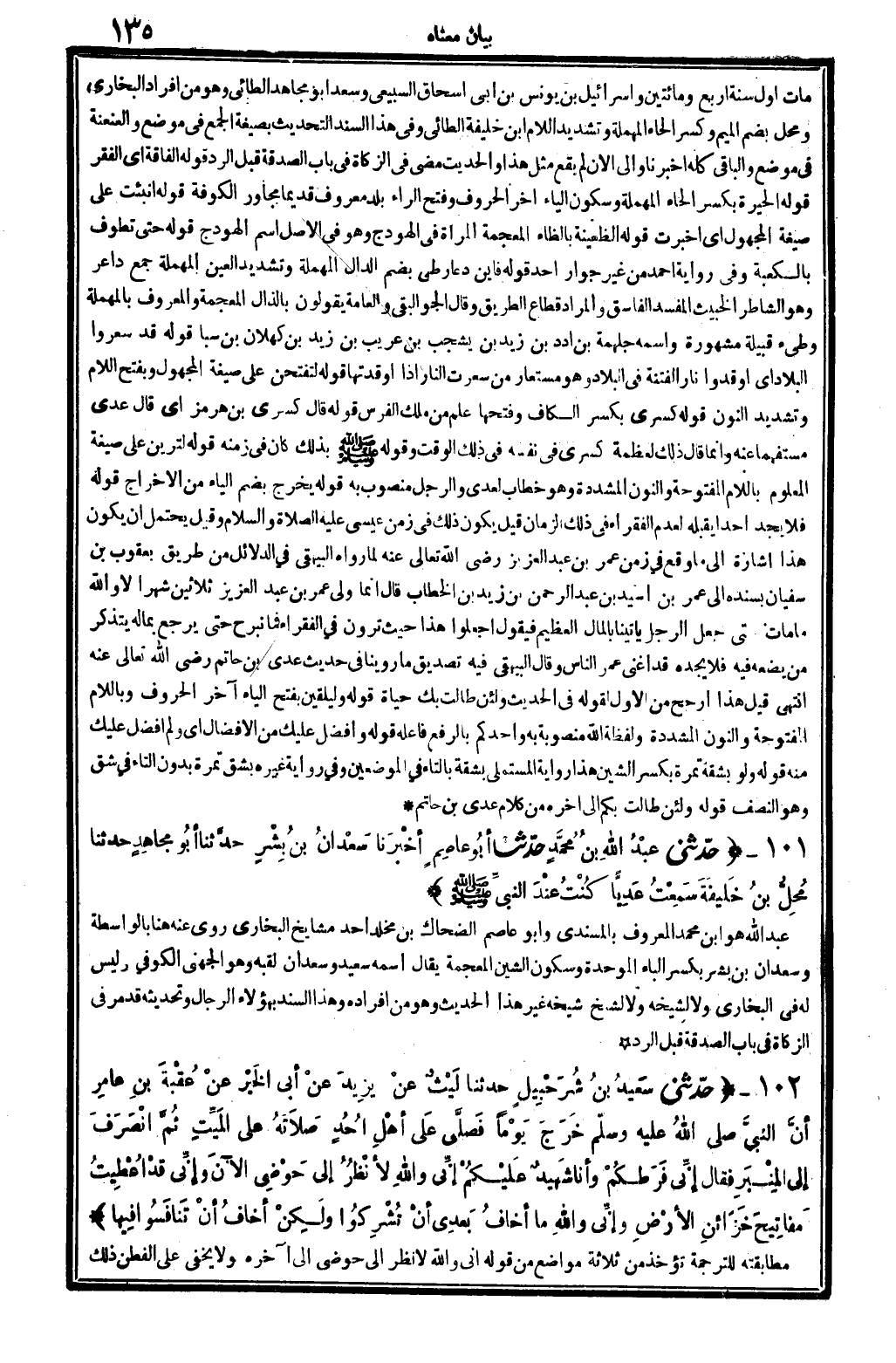 حدَّثني عَبْدُ الله بنُ مُحَمَّدٍ حدَّثنا أبُو عاصِمٍ أخْبَرَنَا سَعْدَانُ بنُ بِشْرٍ حدَّثنا أبُو مُجَاهِدٍ حدَّثنا مُحِلُّ بنُ خَلِيفَةَ سَمِعْتُ عَدِيَّاً كُنْتُ عِنْدَ النَّبِيِّ صلى الله عَلَيْهِ وَسلم