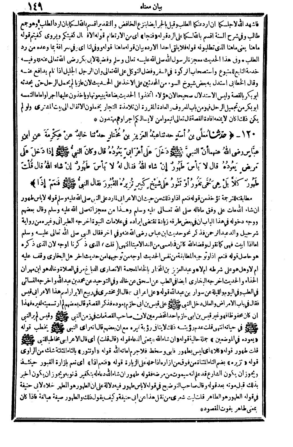 6163 - حدَّثنا مُعَلَّى بنُ أسَدٍ حدَّثنا عبْدُ العَزِيزِ بنُ مُخْتَارٍ حدَّثنا خالِدٌ عنْ عِكْرِمَةَ عنِ ابنِ عبَّاسٍ رَضِي الله تَعَالَى عَنْهُمَا أنَّ النَّبِيَّ صلى الله عَلَيْهِ وَسلم دخَلَ علَى أعْرَابِيٍّ يعُودُهُ قَالَ وكانَ النَّبِيُّ صلى الله عَلَيْهِ وَسلم إذَا دَخَلَ علَى مَرِيضٍ يَعُودُهُ قَالَ لَا بَأسَ طَهُورٌ إنْ شاءَ الله فَقَالَ لَهُ لَا بَأسَ طَهُورٌ إنْ شَاءَ الله قَالَ قُلْتَ طَهُورٌ كَلاَّ بَلْ هِيَ حُمَّى تَفُورُ أوْ تَثُورُ علَى شَيْخٍ كَبِيرٍ تُزِيرُهُ القُبُور فَقَالَ النَّبِيُّ صلى الله عَلَيْهِ وَسلم فَنعَمْ إذَاً. .