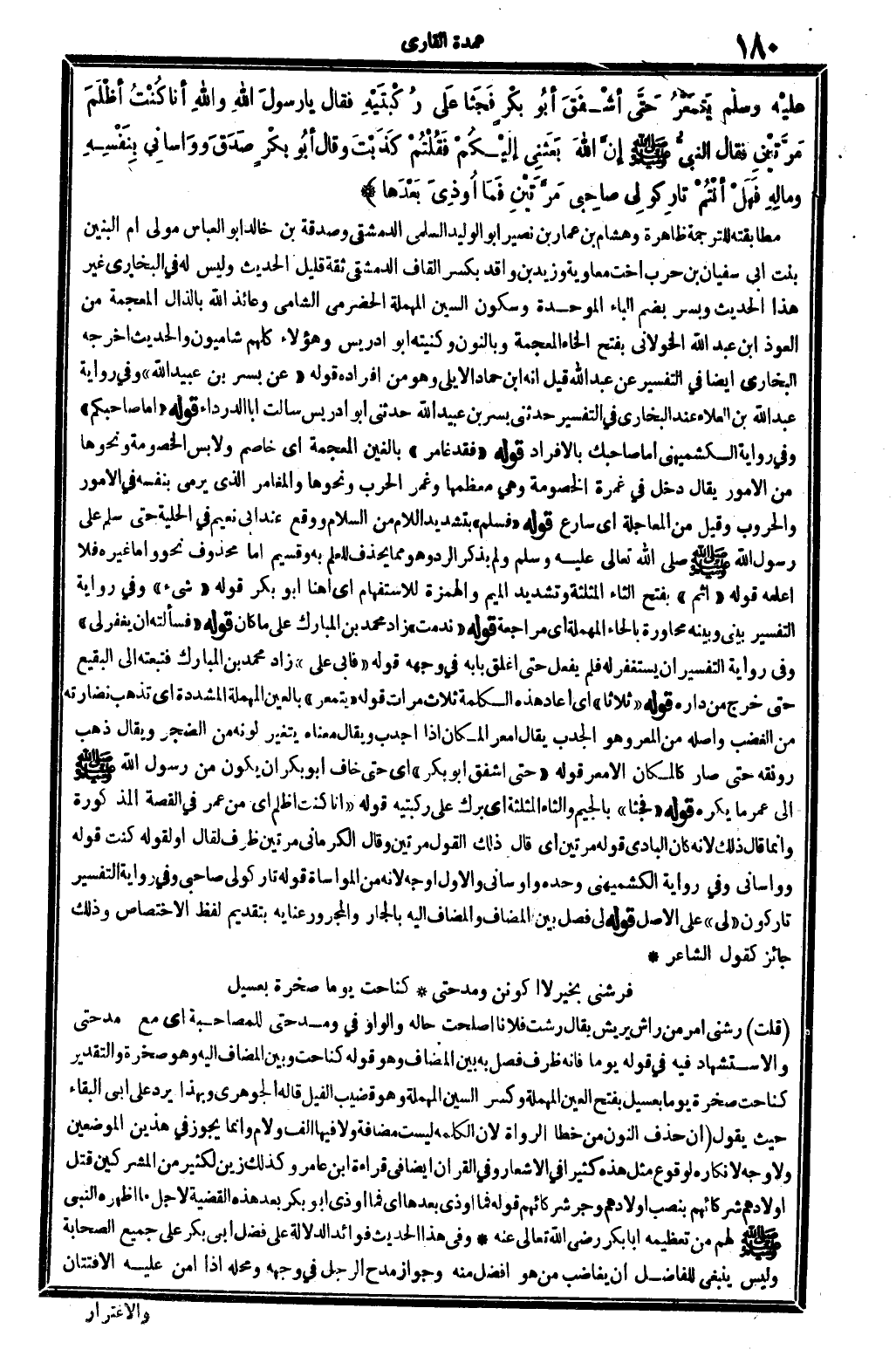 عَلَيْهِ وَسلم يتَمَعَّرُ حتَّى أشْفَقَ أبُو بَكْرٍ فَجَثَا علَى رُكْبَتَيْهِ فَقَالَ يَا رَسُولَ الله وَالله أنَا كُنْتُ أظْلَمَ مَرَّتَيْنِ فَقَالَ النَّبِيُّ صلى الله عَلَيْهِ وَسلم إنَّ الله بعَثَنِي إلَيْكُمْ فَقُلْتُمْ كَذَبْتَ وقالَ أبُو بَكْرٍ صَدَقَ وَوَاسانِي بنَفْسِهِ ومالِهِ فَهَلْ أنْتُمْ تَارِكُو لِي صاحِبي مرَّتَيْنِ فَمَا أُوذِيَ بَعْدَهَا. (الحَدِيث 1663 طرفه فِي: 0464) .
