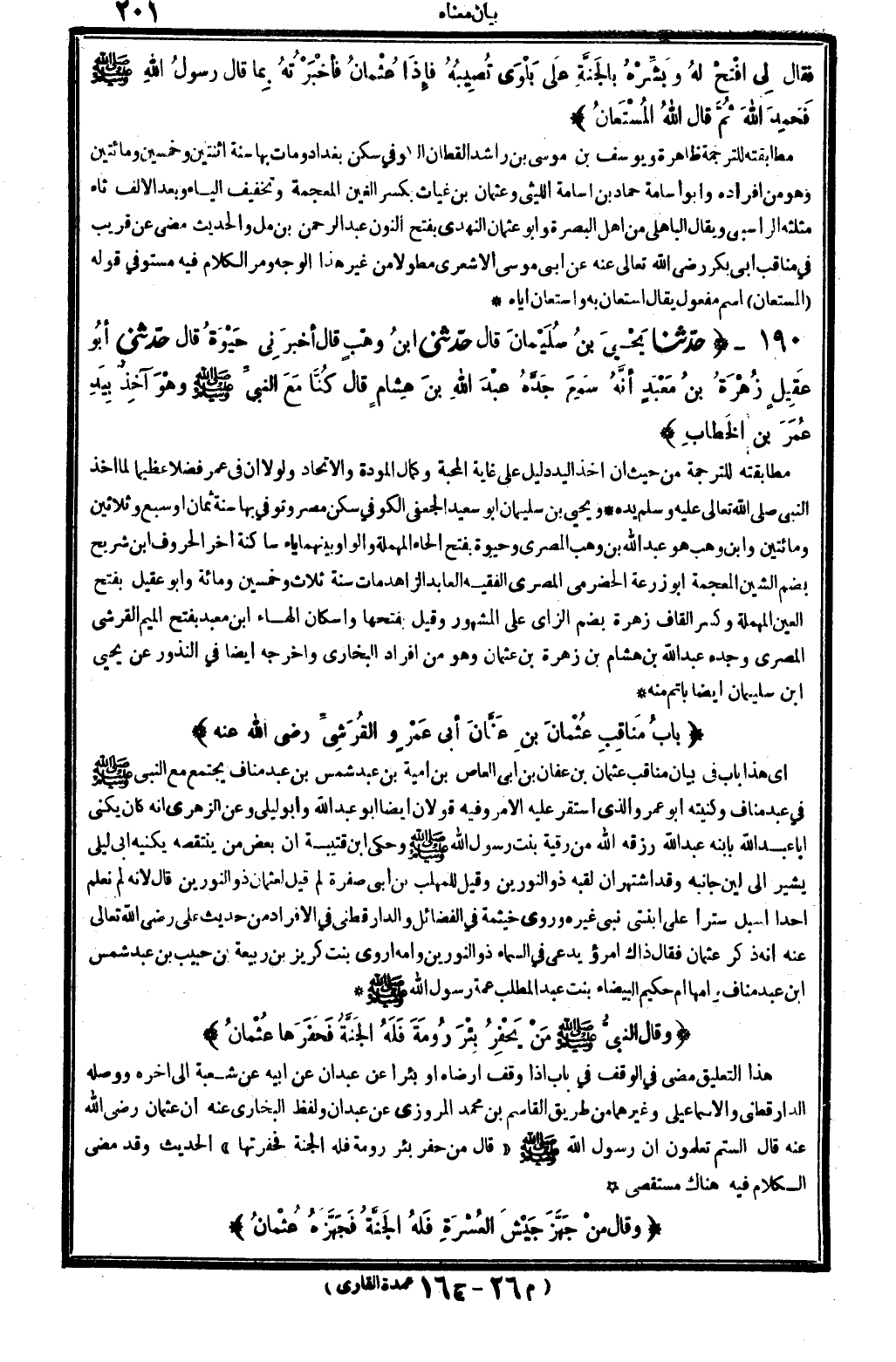 وَقَالَ النَّبِيُّ صلى الله عَلَيْهِ وَسلم مَنْ يَحْفِرُ بِئْرَ رُومَةَ فَلَهُ الجَنَّةُ فَحَفَرَهَا عُثْمَانُ