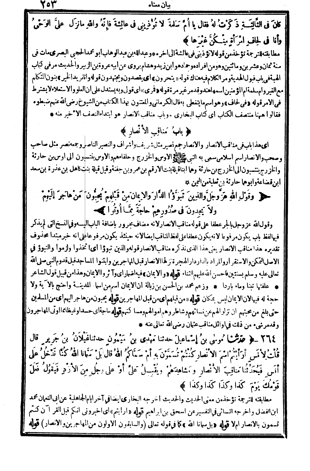 وقَوْلِ الله عز وجلَّ {والَّذِينَ تَبَوَّؤُا الدَّارَ والإيمانَ مِنْ قَبْلِهِمْ يُحِبُّونَ مَنْ هاجَرَ إلَيْهِمْ ولاَ يَجِدُونَ فِي صُدُورِهِمْ حاجَةً مِمَّا أُوتُوا} (الْحَشْر: 9) .