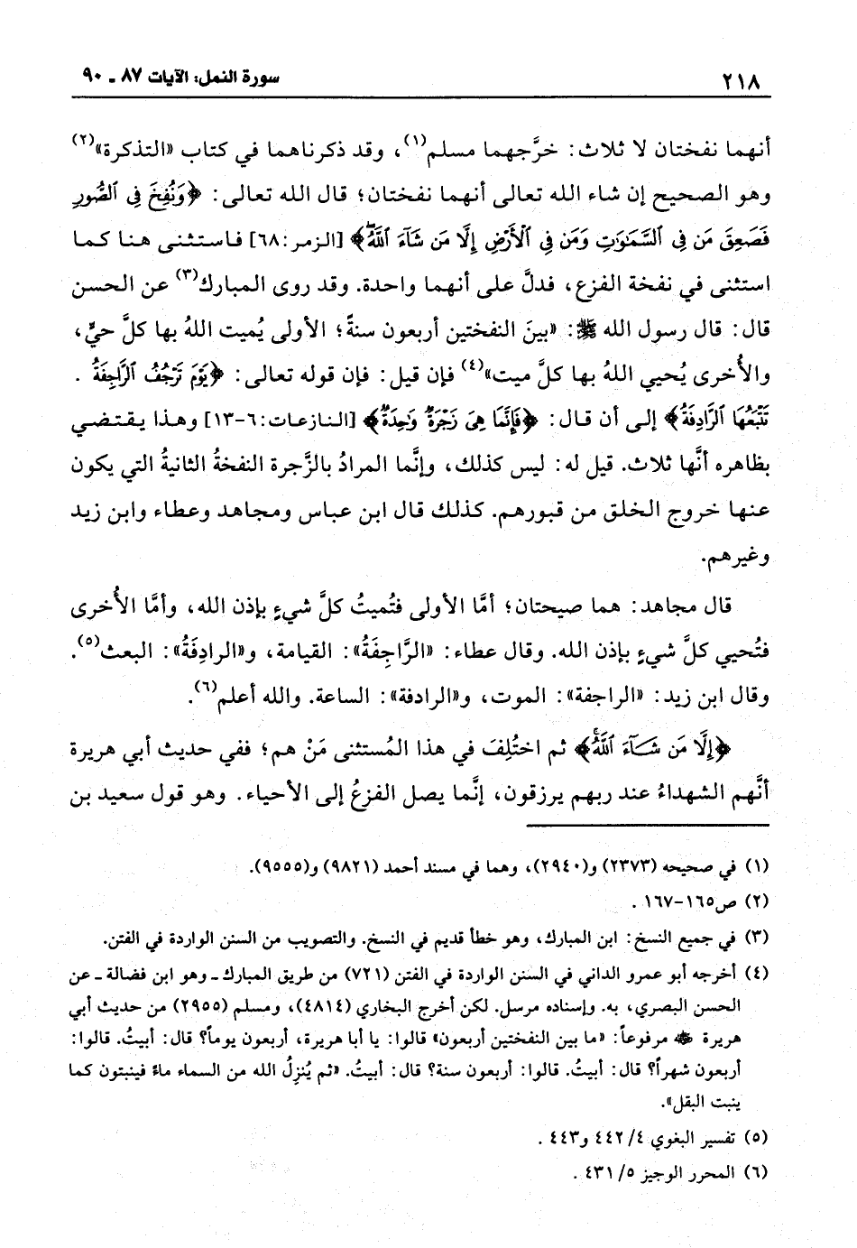 «2» ْجِنِّ وَالْإِنْسِ أَلَمْ يَأْتِكُمْ رُسُلٌ مِنْكُمْ يَقُصُّونَ عَلَيْكُمْ آياتِي- إِلَى أَنْ قَالَ- وَلِكُلٍّ دَرَجاتٌ مِمَّا عَمِلُوا" [الانعام: 132 - 130]. وَاللَّهُ أَعْلَمُ، وَسَيَأْتِي لِهَذَا فِي سُورَةِ" الرَّحْمَنِ" «3» مزيد بيان إن شاء الله تعالى.