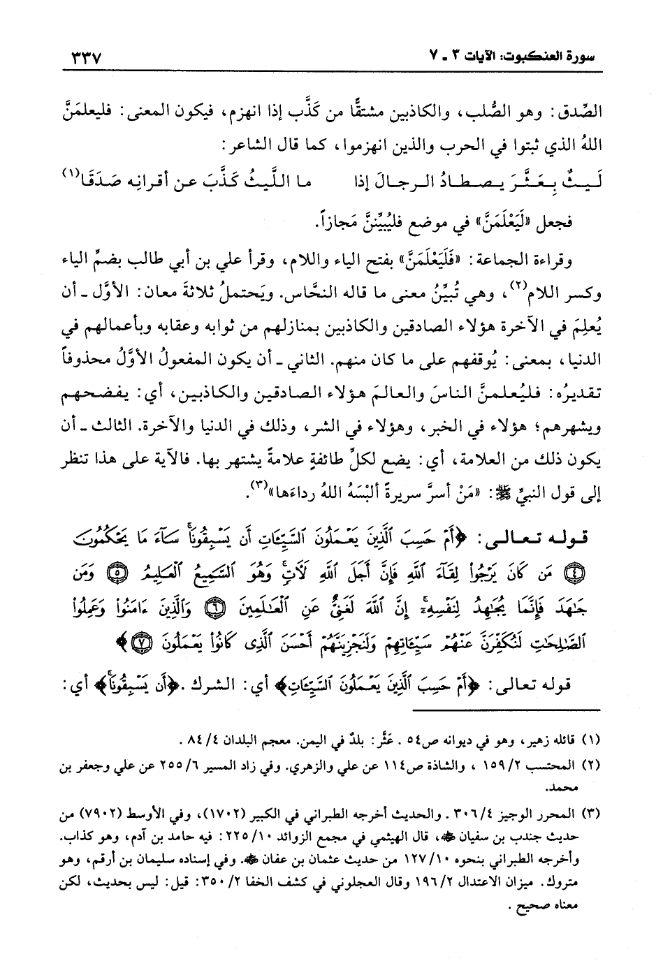 السَّابِعَةُ- ذَهَبَ قَوْمٌ إِلَى أَنَّ الْغِيبَةَ لَا تَكُونُ إِلَّا فِي الدِّينِ وَلَا تَكُونُ فِي الْخِلْقَةِ وَالْحَسَبِ. وَقَالُوا: ذَلِكَ فِعْلُ اللَّهِ بِهِ. وَذَهَبَ آخَرُونَ إِلَى عَكْسِ هَذَا فَقَالُوا: لَا تَكُونُ الْغِيبَةُ إِلَّا فِي الْخَلْقِ وَالْخُلُقِ وَالْحَسَبِ. وَالْغِيبَةُ فِي الْخَلْقِ أَشَدُّ، لِأَنَّ مَنْ عَيَّبَ صَنْعَةً فَإِنَّمَا عَيَّبَ صَانِعَهَا. وَهَذَا كُلُّهُ مَرْدُودٌ. أَمَّا الْأَوَّلُ فَيَرُدُّهُ حَدِيثُ عَائِشَةَ حِينَ قَالَتْ فِي صَفِيَّةَ: إِنَّهَا امْرَأَةٌ قَصِيرَةٌ، فَقَالَ لَهَا النَّبِيُّ صَلَّى اللَّهُ عَلَيْهِ وَسَلَّمَ:] لَقَدْ قُلْتِ كَلِمَةً لَوْ مُزِجَ بِهَا الْبَحْرُ لَمَزَجَتْهُ [. خَرَّجَهُ أَبُو دَاوُدَ. وَقَالَ فِيهِ التِّرْمِذِيُّ: حَدِيثٌ حَسَنٌ صَحِيحٌ، وَمَا كَانَ فِي مَعْنَاهُ حَسَبُ مَا تَقَدَّمَ. وَإِجْمَاعُ الْعُلَمَاءِ قَدِيمًا عَلَى أَنَّ ذَلِكَ غِيبَةٌ إِذَا أُرِيدَ بِهِ الْعَيْبُ. وَأَمَّا الثَّانِي فَمَرْدُودٌ أَيْضًا عِنْدَ جَمِيعِ الْعُلَمَاءِ، لِأَنَّ الْعُلَمَاءَ مِنْ أَوَّلِ الدَّهْرِ مِنْ أَصْحَابِ رَسُولِ اللَّهِ صَلَّى اللَّهُ عَلَيْهِ وَسَلَّمَ وَالتَّابِعِينَ بَعْدَهُمْ لَمْ تَكُنِ الْغِيبَةُ عِنْدَهُمْ فِي شَيْءٍ أَعْظَمَ مِنَ الْغِيبَةِ فِي الدِّينِ، لِأَنَّ عَيْبَ الدِّينِ أَعْظَمُ الْعَيْبِ، فَكُلُّ مُؤْمِنٍ يَكْرَهُ أَنْ يُذْكَرَ فِي دِينِهِ أَشَدَّ مِمَّا يَكْرَهُ فِي بَدَنِهِ. وَكَفَى رَدًّا لِمَنْ قَالَ هَذَا الْقَوْلَ قَوْلُهُ عَلَيْهِ السَّلَامُ:] إِذَا قُلْتَ فِي أَخِيكَ مَا يَكْرَهُ فَقَدِ اغْتَبْتَهُ ... [الْحَدِيثَ. فَمَنْ زَعَمَ أَنَّ ذَلِكَ لَيْسَ بِغِيبَةٍ فَقَدْ رَدَّ مَا قَالَ النَّبِيُّ صَلَّى اللَّهُ عَلَيْهِ وَسَلَّمَ نَصًّا. وَكَفَى بِعُمُومِ قَوْلِ النَّبِيِّ صَلَّى اللَّهُ عَلَيْهِ وَسَلَّمَ:] دِمَاؤُكُمْ وَأَمْوَالُكُمْ وَأَعْرَاضُكُمْ عَلَيْكُمْ حَرَامٌ [وَذَلِكَ عَامٌّ لِلدِّينِ والدنيا. وَقَوْلُ النَّبِيِّ صَلَّى اللَّهُ عَلَيْهِ وَسَلَّمَ:] مَنْ كانت عِنْدَهُ لِأَخِيهِ مَظْلَمَةٌ فِي عِرْضِهِ أَوْ مَالِهِ فَلْيَتَحَلَّلْهُ مِنْهُ [. فَعَمَّ كُلَّ عِرْضٍ، فَمَنْ خَصَّ مِنْ ذَلِكَ شَيْئًا دُونَ شَيْءٍ فَقَدْ عَارَضَ ما قال النبي صَلَّى اللَّهُ عَلَيْهِ وَسَلَّمَ. الثَّامِنَةُ- لَا خِلَافَ أَنَّ الْغِيبَةَ مِنَ الْكَبَائِرِ، وَأَنَّ مَنِ اغْتَابَ أَحَدًا عَلَيْهِ أَنْ يَتُوبَ إِلَى اللَّهِ عَزَّ وَجَلَّ. وَهَلْ يَسْتَحِلُّ الْمُغْتَابُ؟ اخْتُلِفَ فِيهِ، فَقَالَتْ فِرْقَةٌ: لَيْسَ عَلَيْهِ اسْتِحْلَالُهُ، وَإِنَّمَا هِيَ خَطِيئَةٌ بَيْنَهُ وَبَيْنَ رَبِّهِ. وَاحْتَجَّتْ بِأَنَّهُ لَمْ يَأْخُذْ مِنْ مَالِهِ وَلَا أَصَابَ مِنْ بَدَنِهِ مَا يُنْقِصُهُ، فَلَيْسَ ذَلِكَ بِمَظْلَمَةٍ يَسْتَحِلُّهَا مِنْهُ، وَإِنَّمَا الْمَظْلَمَةُ مَا يَكُونُ مِنْهُ الْبَدَلُ وَالْعِوَضُ فِي الْمَالِ وَالْبَدَنِ. وَقَالَتْ فِرْقَةٌ: هِيَ مَظْلَمَةٌ، وَكَفَّارَتُهَا الِاسْتِغْفَارُ لِصَاحِبِهَا الَّذِي اغْتَابَهُ. وَاحْتَجَّتْ بِحَدِيثٍ يُرْوَى عَنِ الْحَسَنِ قَالَ: كَفَّارَةُ الْغِيبَةِ أَنْ تَسْتَغْفِرَ لِمَنِ اغْتَبْتَهُ. وَقَالَتْ فِرْقَةٌ: هِيَ مَظْلَمَةٌ وَعَلَيْهِ الِاسْتِحْلَالُ مِنْهَا. وَاحْتَجَّتْ بِقَوْلِ النَّبِيِّ صَلَّى اللَّهُ عَلَيْهِ وَسَلَّمَ:] مَنْ كانت